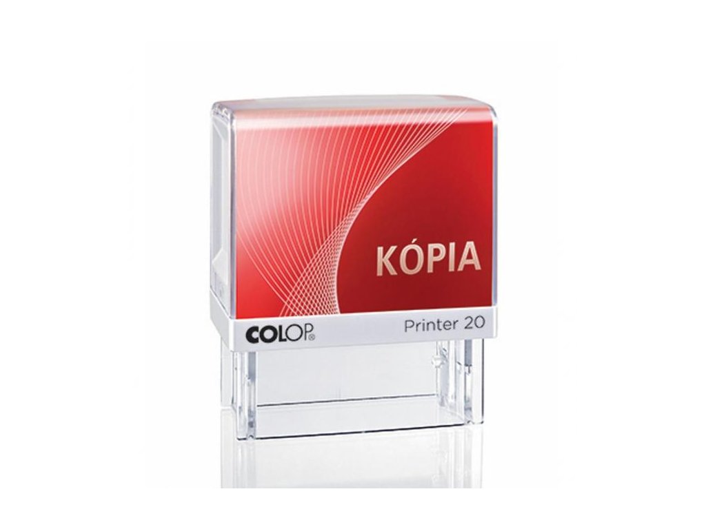 Samofarbiace pečiatky s hotovým textom: DOBIERKA. Veľkosť odtlačku 14 × 38 mm. Farba odtlačku červená. Náhradná poduška E/20 červená. Počet riadkov textu: 1.Dodatočné parametre