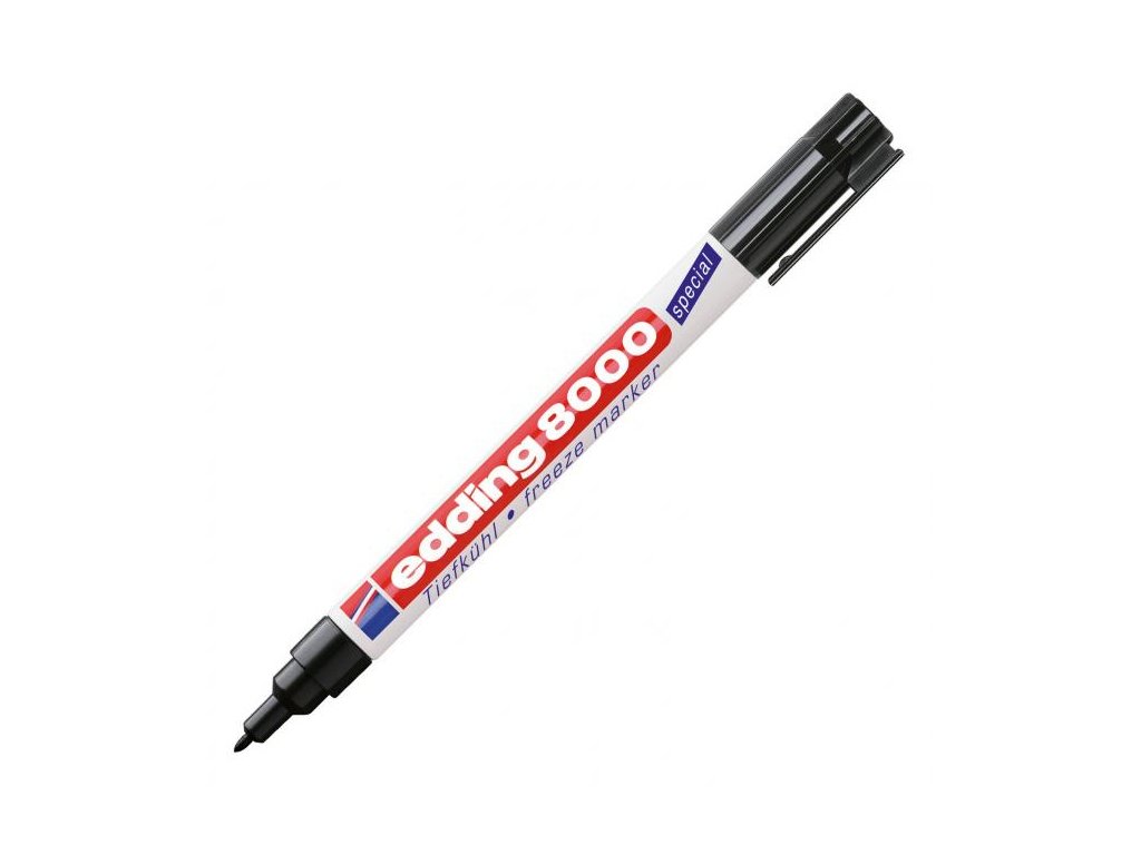 Popisovač edding 8000 freeze s permanentným rýchloschnúcim atramentom, odolným voči mrazu. Maximálne vhodný na označovanie a popisovanie obalov a dóz do zmrazeného prostredia. Hrot okrúhly, šírka stopy 1 mm.Dodatočné parametre