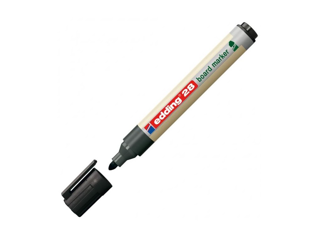 Popisovač na biele tabule, za sucha stierateľný prakticky zo všetkých neporóznych povrchov, ako je keramická úprava, melamín i sklo. Minimálne 80 % plastovej časti je vyrobených z recyklovaného materiálu. Okrúhly hrot, šírka stopy 1,5 - 3 mm. Rýchloschnúci, vodeodolný, slabo zapáchajúci atrament intenzívnej farby. Krátky čas vydrží neuzavretý bez vyschnutia. Väčšie balenie 10 ks.Farba: čierna