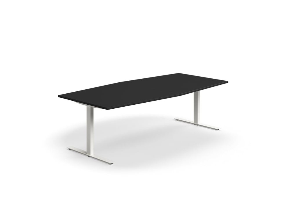 Rokovací stôl QBUS, oválny, 2400x1200 mm, T-rám, biely rám, čierna
