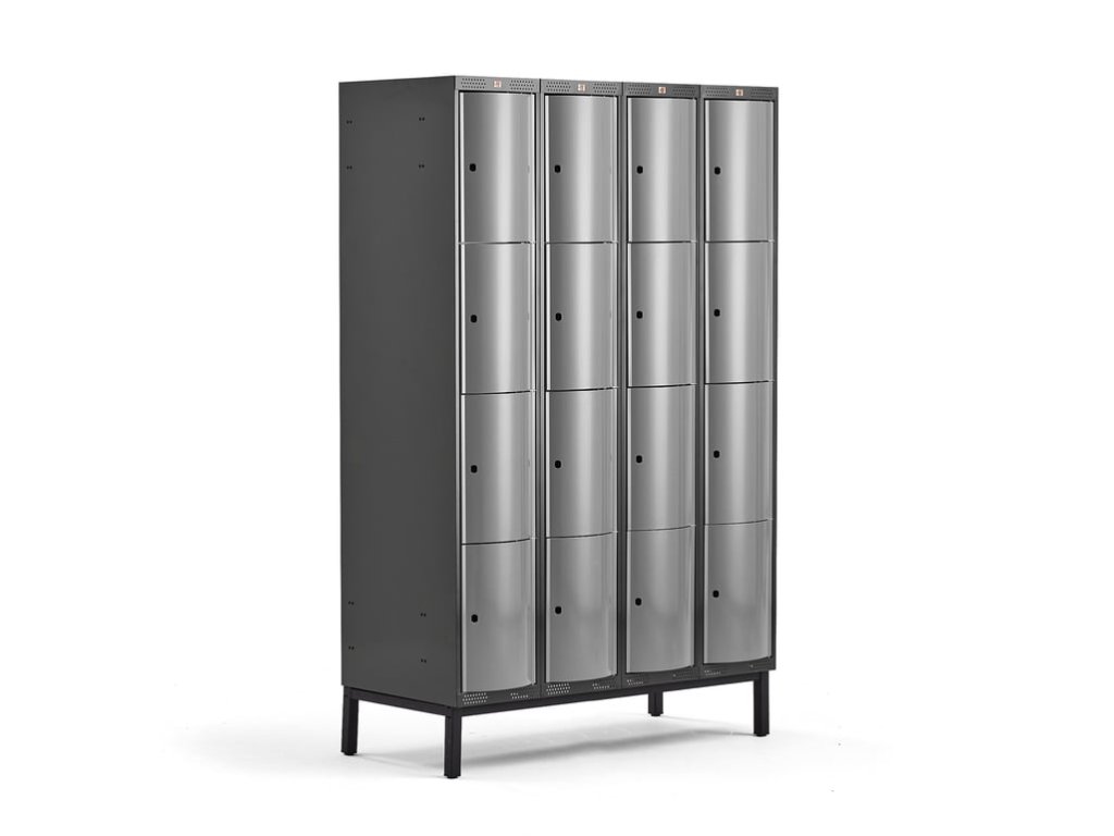 Šatňová skrinka CURVE, na nožičkách, 4x4 dvere, 1940x1200x550 mm, šedá
