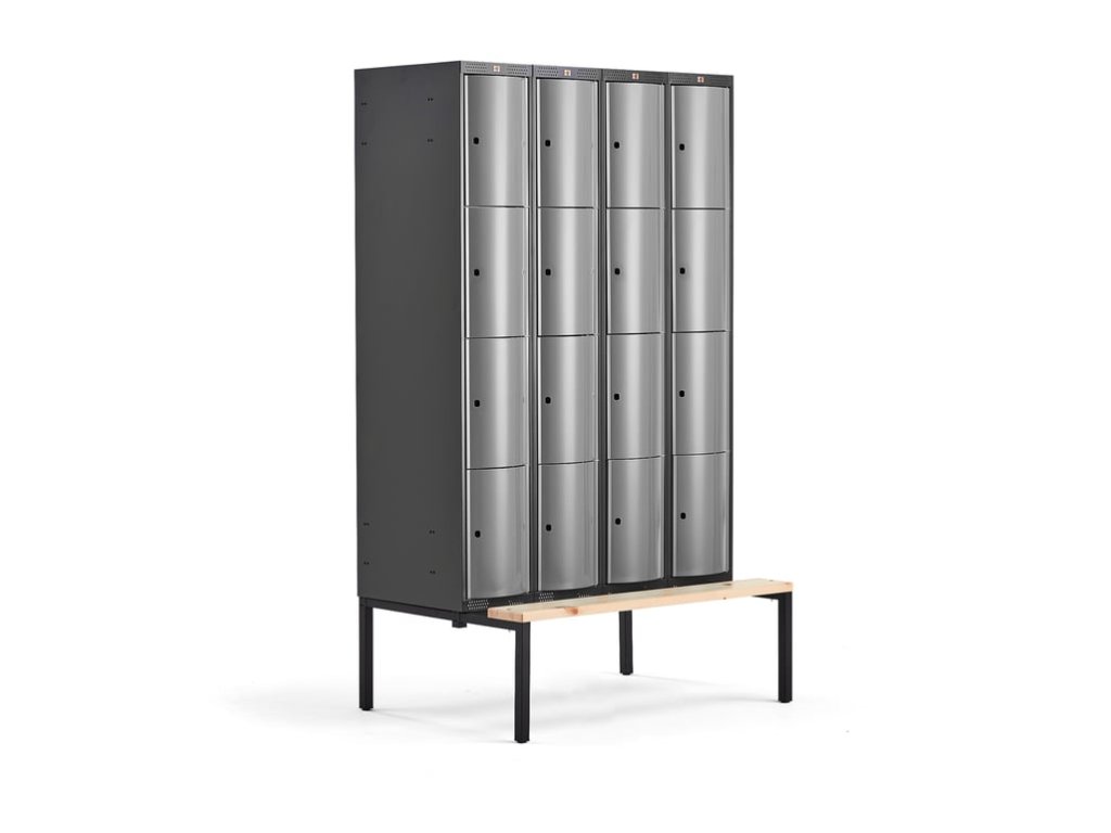 Šatňová skrinka CURVE, s lavičkou, 4x4 dvere, 2120x1200x550 mm, šedá
