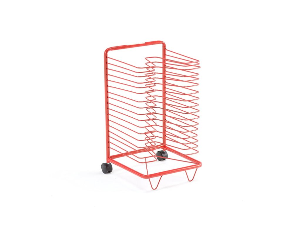 Praktický sušiak na výkresy z lakovanej ocele. Vybavený 17 drôtenými policami, kolieskami a opornými nohami. Vozík je ideálny pre škôlky alebo školy. Praktický sušiak na výkresy a ďalšie kreatívne práce. Vďaka otvorenej konštrukcii drôtených políc umožňuje prúdenie vzduchu zospodu a rýchlejšie sušenie papiera a ďalších predmetov. Sušiaci vozík je priestorovo úsporný, ale pojme veľké množstvo materiálu. Vďaka kolieskam je možné vozík veľmi ľahko vybrať, keď deti chcú sušiť alebo vybrať svoje výkresy. Rovnako ľahko ho možno uložiť späť na miesto, aby neprekážal. Celý vozík je vyrobený z odolnej a lakovanej rúrkovej ocele.Buďte prvý, kto napíše príspevok k tejto položke.