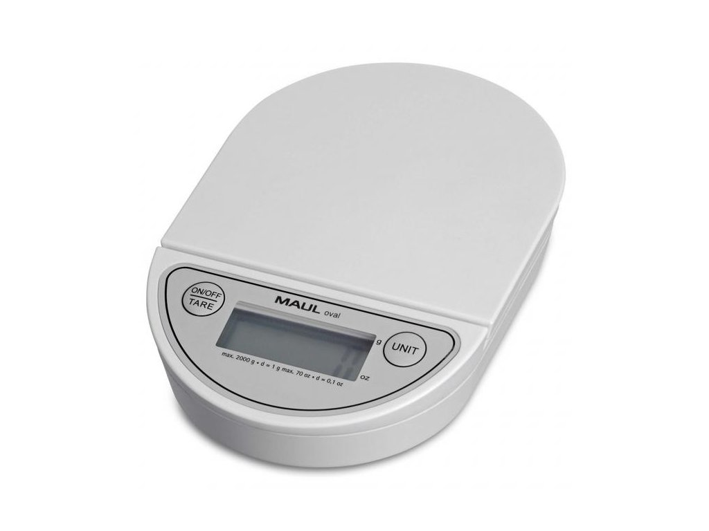 Elektronická váha oválneho tvaru s jedným ovládacím tlačidlom a funkciou automatického vypnutia a automatického vynulovania. Minimálna váha 2 g. Dodávaná s batériou. Rozmery 180 × 120 × 30 mm. Materiál nárazuvzdorný plast. Farba biela. Kapacita 2 kg. Stupňovanie 1 g. Váha nie je určená na použitie v platobnom styku. Napájanie 3V batériou CR2032.Funkcia Tare. Rozmery vážiacej plochy 120 × 120 mm.