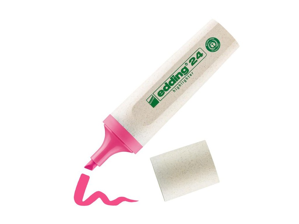 Minimálne 90% tela a uzáveru zvýrazňovača je vyrobené z obnoviteľných zdrojov. Zvýrazňovač so zrezaným hrotom so šírkou stopy 2 - 5 mm. Pre zvýraznenie textových pasáží, poznámok a pod. Atrament na vodnej báze s intenzívnymi farbami. Dopĺňateľný atramentom HTK 25. Balenie 10 ks.Farba: ružová