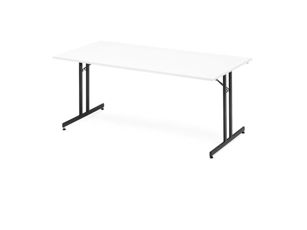 Folding table with a solid T frame and a rectangular table top. A folding table is a practical and versatile piece of furniture for any interior for temporary as well as permanent use. Perfect for conferences, meetings, business presentations, trade fairs, exhibitions and school facilities. The simple unfolding mechanism enables easy and quick folding of the table and its convenient transport and subsequent storage. Complement the table with folding or stackable chairs to achieve a fully flexible solution. The folding table with a strong, stable frame has a durable, easy-to-wash laminated oval-shaped table top. The collapsible T-frame has flat bases, with black plastic caps, and ensures maximum stability. Choose between a chrome or lacquered construction in black or aluminum grey.Be the first who will post an article to this item!