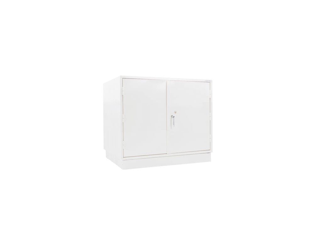 Lockable storage cabinet with fireproof insulation (ISO 1182) between double steel plates in the door, top and bottom. Strongly reinforced door. Lockable storage cabinet with fireproof insulation (ISO 1182) between double steel plates in the door, top and bottom. The entire cabinet is finished with fire-resistant powder paint. It has also been tested for stability and strength, confirming that it is very durable. The cabinet is an excellent choice for storing items such as tools, accounting records, tools and more. It can also be used to reduce the spread of fire in dangerous areas and to store objects in evacuation routes in schools, hospitals, offices and industry. The storage cabinet has multi-point locking and a cylinder lock that comes with two keys. The cabinet is reinforced in the area of hinges and latches. The cabinet is supplied with an adjustable shelf, so you can adapt the interior space to your own needs. You can add additional shelves to the closet and customize the closet to your own needs. Sliding hanging frames for filing cabinets can be added to a cabinet with a depth of 450 mm.Be the first who will post an article to this item!