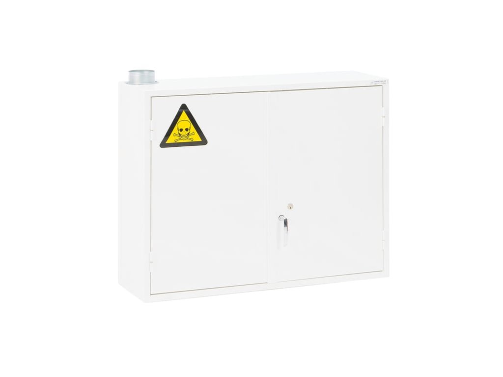 Lockable safety cabinet for chemicals. Includes shelf and screws for mounting on chemical cabinet. Low-positioned handle. The ventilation of this lockable chemical cabinet has been tested by SP Technical Research Institute in Sweden. Along the left side of the cabinet there is a ventilation shaft with adjustable openings at the top and bottom. The space between all shelves is ventilated. The cabinet's resistance to external fire was tested by the SP Technical Research Institute in Sweden. It was also tested for stability and strength, which confirmed that it is very durable. Lockable storage cabinet with fireproof insulation (ISO 1182) between double steel plates in the door and in the top and bottom. The entire cabinet is finished with fire-resistant powder paint. It comes with a lock and two keys. Shelves have raised edges and closed corners to prevent spills.Be the first who will post an article to this item!