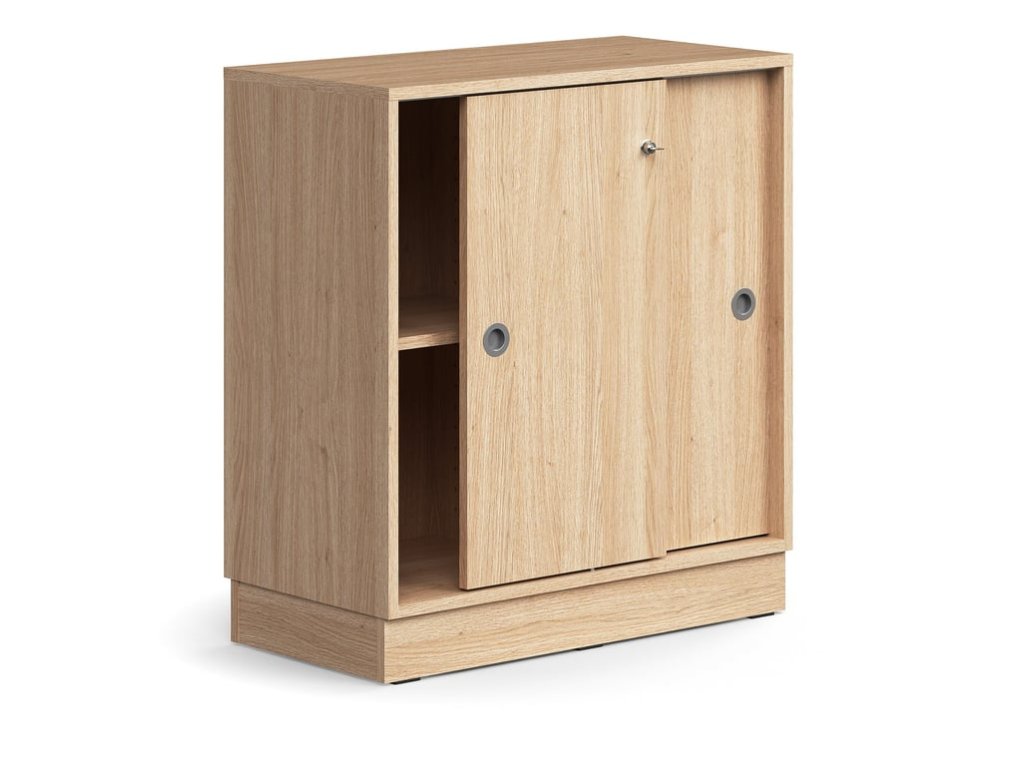 Cabinet with sliding doors QBUS, 1 shelf, with plinth, with handle, 868x800x400 mm, oak