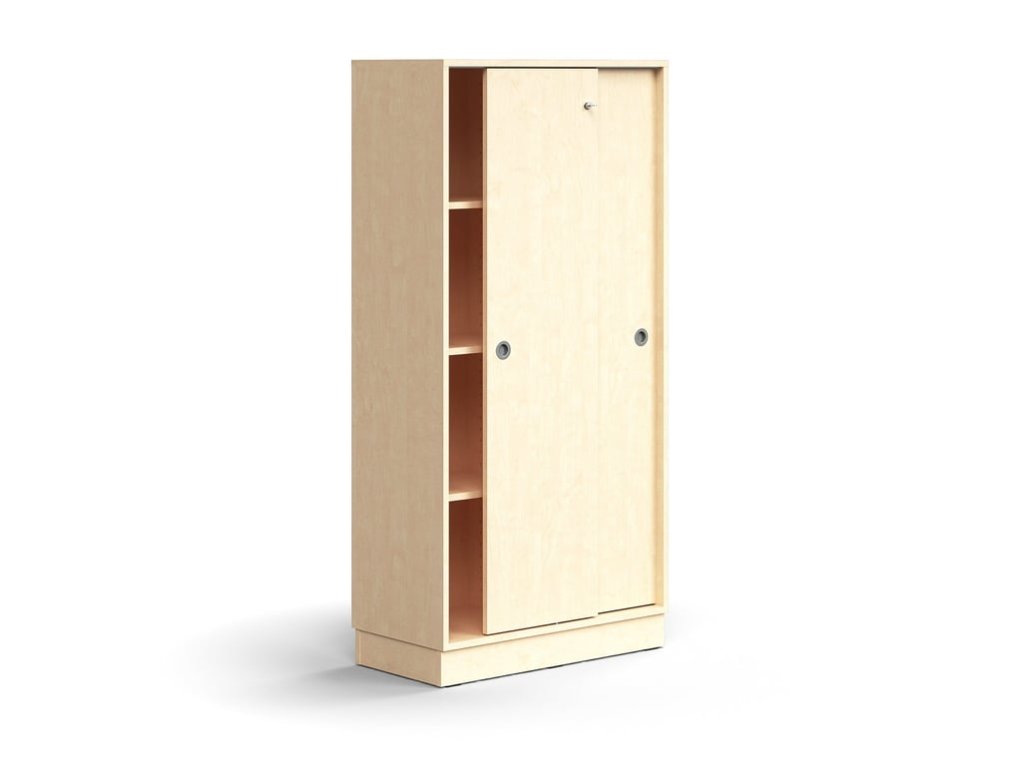 Cabinet with sliding doors QBUS, 3 shelves, with plinth, with handle, 1636x800x400 mm, birch