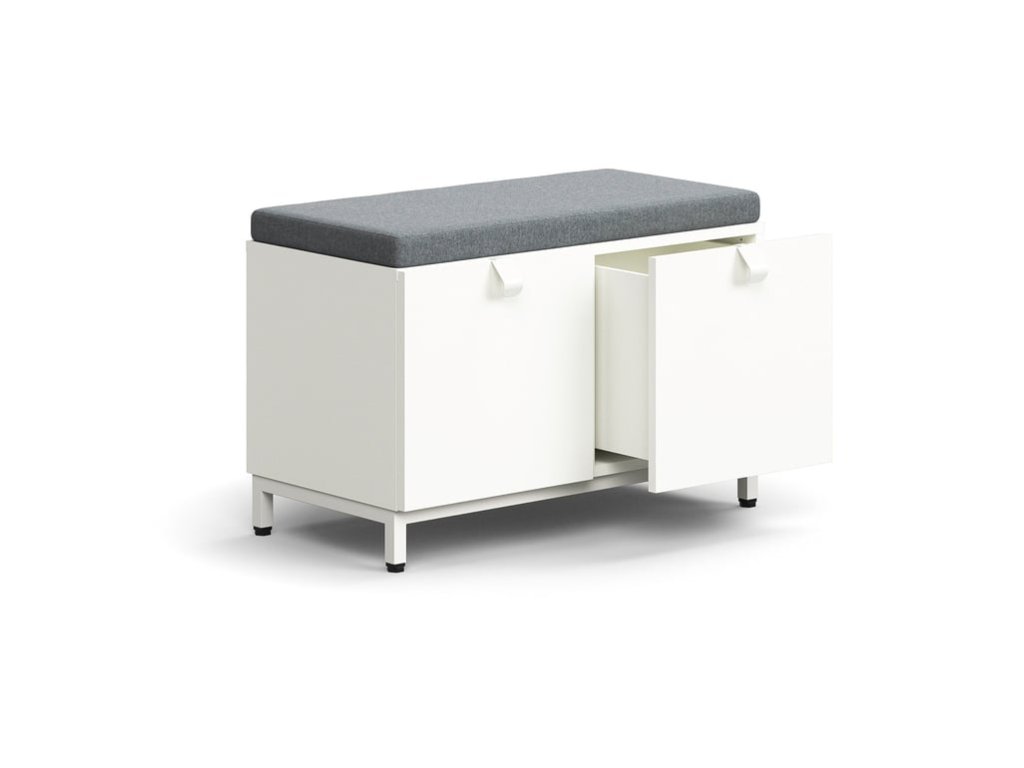 Ławka ze schowkiem QBUS, na nogach, 584x800x420 mm, kolor biały, poduszka szara