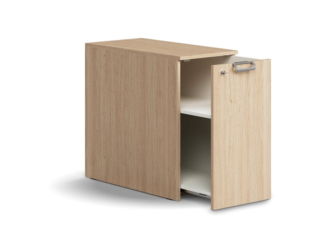 Lockable side cabinet designed by AJProdukty. Combine it with other products of the QBUS furniture line and get a storage solution that looks uniform. This pull-out cabinet has two shelves, which are ideal for storing office supplies and personal items, for example. The customizable QBUS furniture range makes it easy to create an organized workplace. Our practical side cabinet saves space, is lockable and can be used as a storage space or to divide a room. The cabinet can be placed next to the desk, thereby expanding the workplace and creating a common space between workstations. The slide-out cabinet provides a lot of storage space, for example for storing office supplies and personal items that you need to have close at hand. It is made of laminate, which is not only durable, but also easy to clean. Laminate is available in several colors. Comes with handles. The handle has an open design and easy grip, it is made entirely of powder coating. Powder coating provides a hard and durable surface that is ideal for furniture used every day. Do you need practical storage space? QBUS treachery furniture is made so that the individual pieces are compatible with each other. Thanks to the modular concept, you can easily get more storage space if needed. And all so that you can work efficiently throughout the day.Be the first who will post an article to this item!