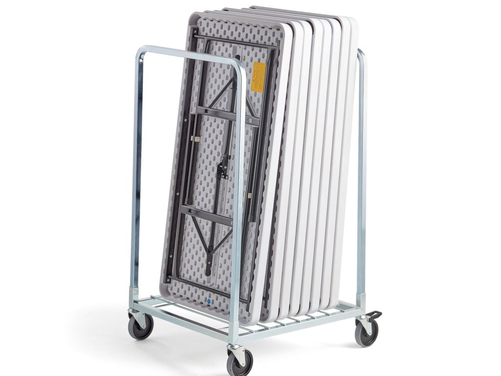 Trolley for transporting tables + 8 folding tables, 1220x610 mm