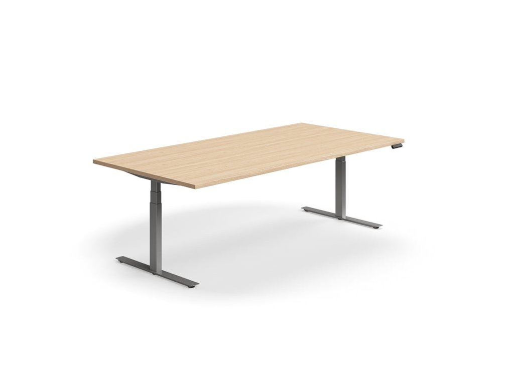 Height-adjustable meeting table QBUS, rectangle, 2400x1200 mm, silver frame, oak