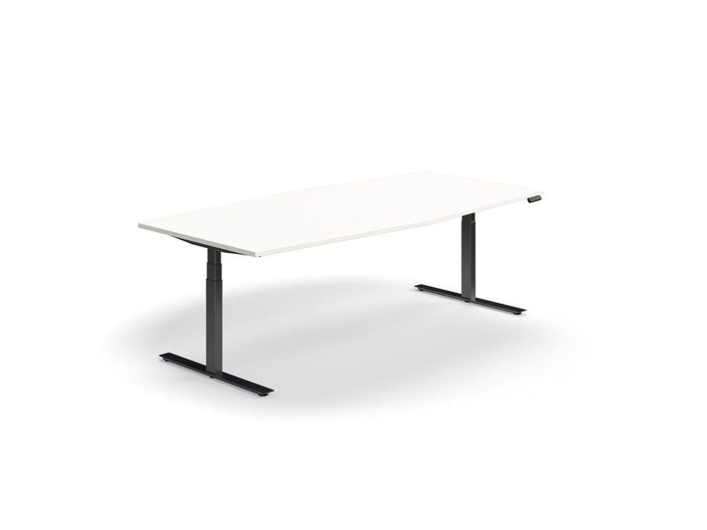 Conference table with adjustable height - a great solution for active meetings. Despite its length, the shape of the table allows for eye contact between everyone sitting around it. The black and white board has an anti-fingerprint coating. The QBUS conference table has a timeless and simple design, making it the optimal starting point for designing a room, as it looks great with most conference chairs. An excellent choice for a modern office. The table is height-adjustable, so meeting participants can easily change their working position between sitting and standing. Standing meetings are a great way to get more movement into your daily life and are often more productive than standard sitting meetings. By changing the working position, meeting participants can improve their physical and mental health and increase creativity. The table top has a laminate surface that is scratch-resistant and easy to clean. The table is wider in the middle and narrower at the ends, which makes it suitable for meetings, as all participants can see each other. The black and white laminate has a surface treated against leaving fingerprints and other traces. The stand is solid, powered by two powerful silent motors. The range between the lowest and the highest working height is extremely large. Do you need storage space? QBUS treachery furniture is designed to fit together, the modular concept makes it easy to add extra storage when you need it. And all so that you can work efficiently throughout the day.Be the first who will post an article to this item!