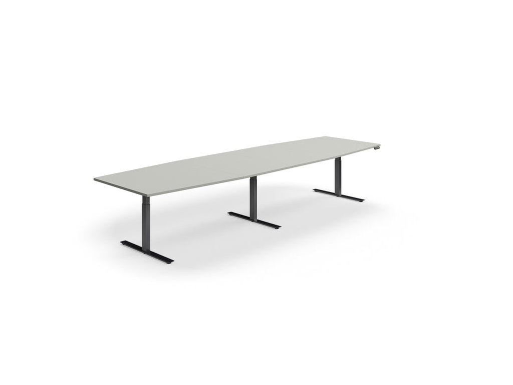 Height-adjustable meeting table QBUS, oval, 4000x1200 mm, black frame, light gray