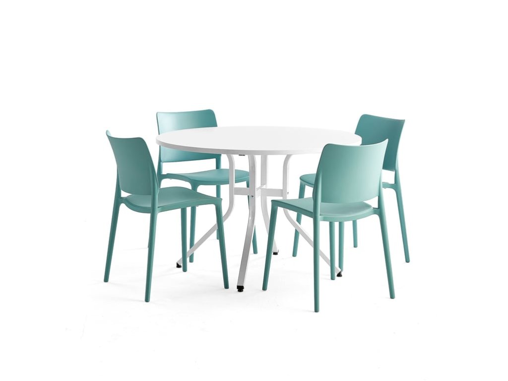 Furniture set: Various table + 4 turquoise Rio chairs